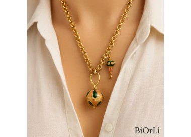 Lydiane – Collier doré et pierres de malachite Subtil et lumineux, le collier Lydiane mêle élégance discrète et éclat naturel. Composé d’un fin...