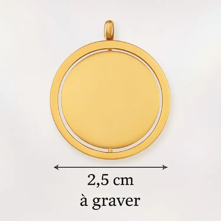Pendentif Élyssandre rotatif doré 18K acier inoxydable personnalisable