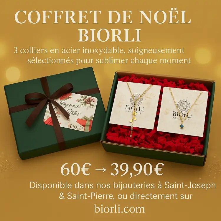 Disponible dans nos bijouteries de Saint-Joseph & Saint-Pierre, ou en ligne sur biorli.com
