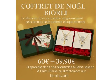 ✨ Pour les fêtes, BiOrLi vous propose un coffret exclusif composé de 3 colliers en acier inoxydable, soigneusement sélectionnés parmi nos créations.