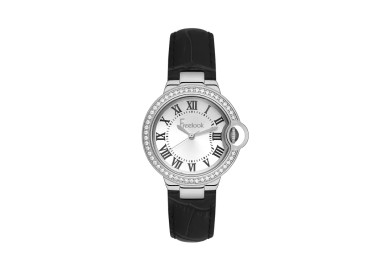 Montre Femme Freelook – Cuir Noir, Cadran Argent, Étanche 3 ATM