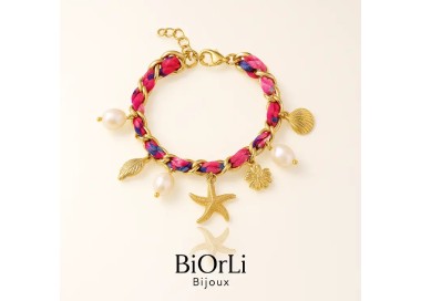 Élora - Bracelet Tressé et Breloques Marines en Acier Doré